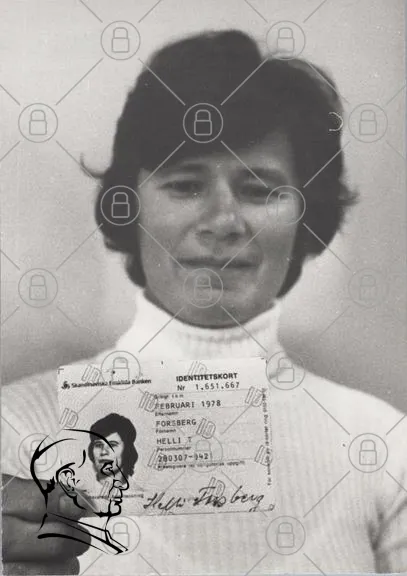 identitetskort, foto, kvinna, svartvitt, 1978, Forsberg, Helli, dokument, person, ansikte, kort, svensk, identifikation, retro, gammal, fotografi, personlig, information, pass, ID, kortnummer, datum, namn, stil, kläder, porträtt, minne, historia, arkiv