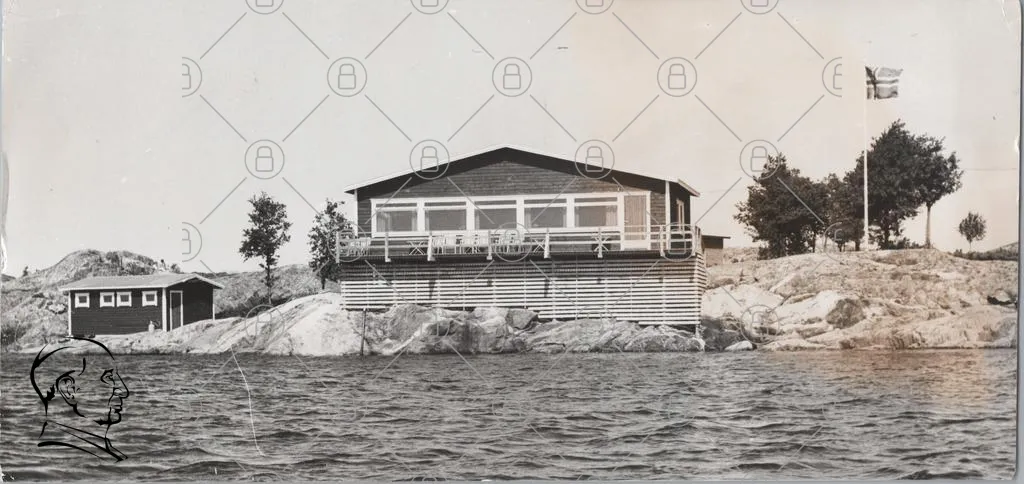 stuga, vatten, klippor, träd, sommar, byggnad, utsikt, brygga, natur, arkitektur, fritid, landskap, sjö, trä, semester, avkoppling, skärgård, sol, båt, terrass, fönster, svartvit, stillhet, lugn, traditionell, utomhus, rekreation, svensk, idyll, hem