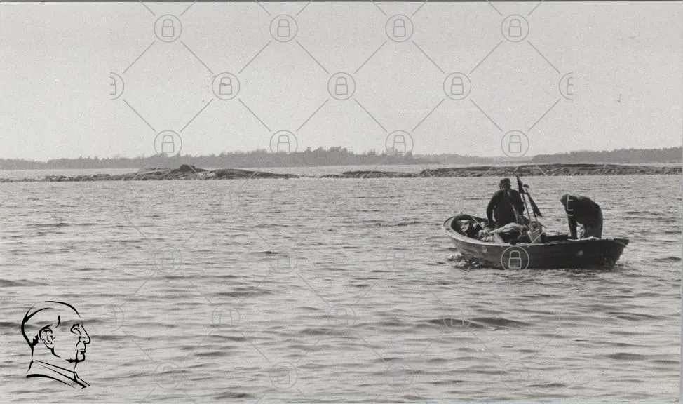 båt, vatten, skärgård, fiske, man, natur, svartvit, landskap, öar, rodd, stillhet, hav, sommar, friluftsliv, tradition, avkoppling, kust, miljö, aktivitet, hobby, lugn