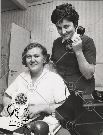 familjeplanering, telefon, kvinnor, svartvitt, kontor, 1970-tal, leende, arbete, rådgivning, hälsa, dokument, professionellt, vintage, kommunikation, socialt arbete, stöd, samhälle, medicinsk rådgivning, historisk, interiör, samarbete