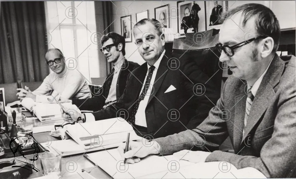 möte, män, skrivbord, dokument, anteckningar, glasögon, kostymer, svartvitt, affärsmän, diskussion, kontor, ledarskap, professionellt, samarbete, 1960-tal, fotografi, ansikten, uttryck, noteringar, presentation, bakgrund, bord, stolar, organisation, grupp, interaktion, stil, formell, arbetsmiljö, fokus