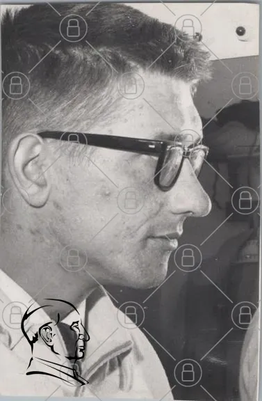 man, glasögon, profil, svartvitt, 1900-tal, ansikte, forskning, vetenskap, teknik, laboratoriemiljö, kläder, intellektuell, studera, experiment, porträtt