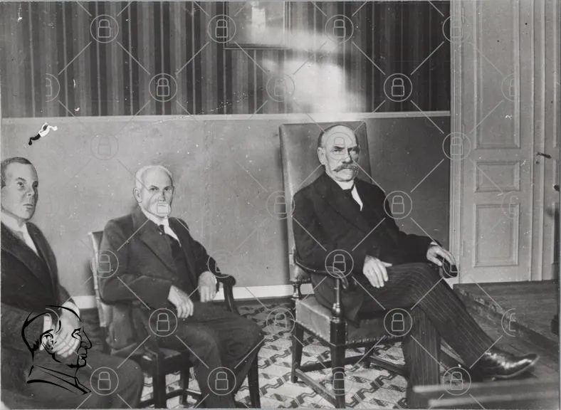 historisk, svartvit, porträtt, män, sittande, kostymer, mustascher, inomhus, möbler, väggar, gammal, fotografi, 1900-tal, stil, kläder, ansiktsuttryck, rum, traditionell, eleganta, samling, grupp, tidsepok, interiör, klassisk, kultur, vintage, stiliserad, detaljer, atmosfär, historia