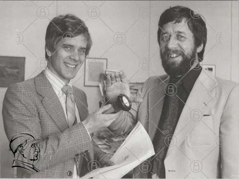 svartvitt, foto, män, kontor, dokument, papper, glasögon, slips, kostym, leende, 1970-tal, professionell, samarbete, presentation, handskakning, teknik, lampa, affärsmöte, vänskap, arbetsmiljö