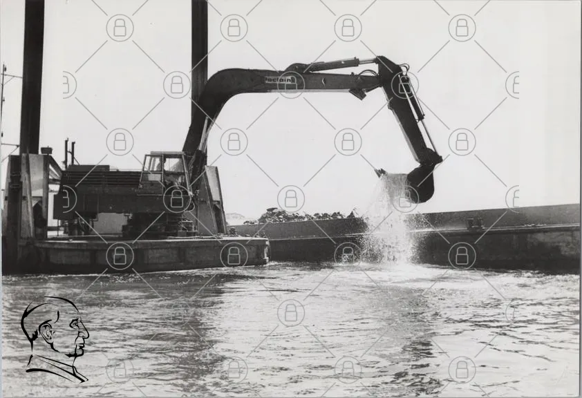 grävmaskin, vatten, byggarbetsplats, konstruktion, industri, maskin, gräva, flod, arbete, svartvit, lastbil, utrustning, grävmaskin på vatten, muddring, transport, lastning, grävmaskinarm, arbetsfordon, teknik, miljö