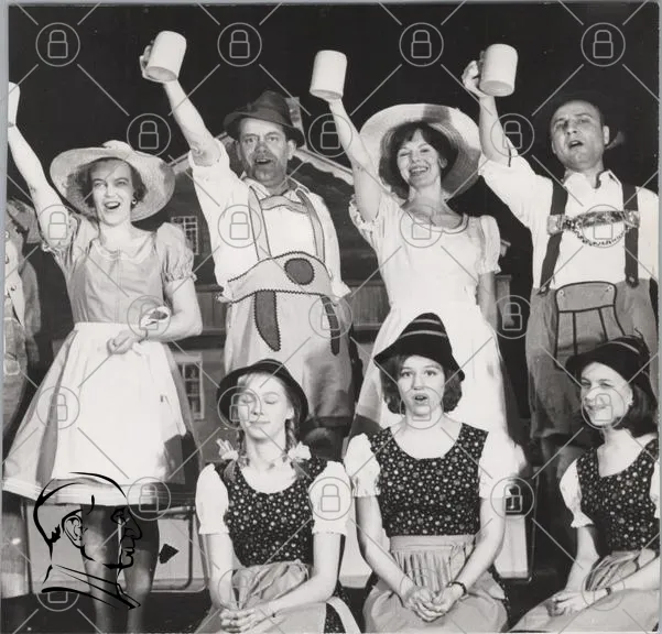 fest, sång, dans, traditionell, kläder, hattar, öl, glädje, grupp, svartvitt, uppträdande, kultur, folkdräkt, leenden, festligheter, scen, underhållning, gemenskap, historisk, feststämning