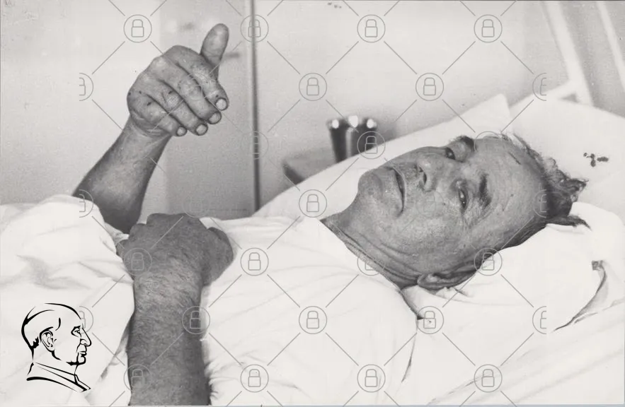 man, säng, sjukhus, gammal, vit skjorta, hand, ansikte, liggande, inomhus, svartvitt, trött, sjuk, vård, rum, blick, avslappnad, äldre, person, medicinsk, sängkläder, hälsa, stilla, fotografi, människa, kroppsspråk, känslor, ålder, livserfarenhet, lugn