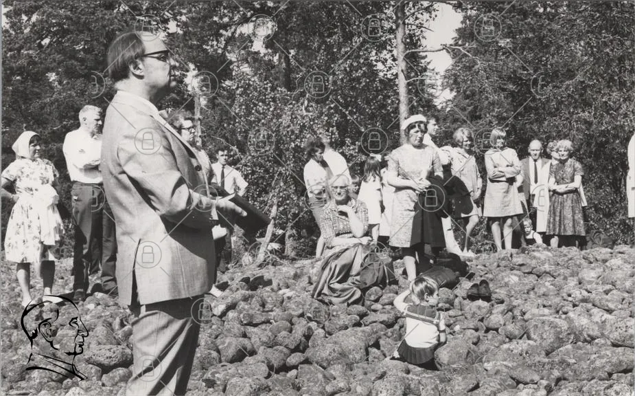historisk, svartvit, människor, barn, kläder, 1960-tal, utomhus, samling, sten, träd, fest, vuxna, kvinna, man, fotografering, tradition, familj, minnen, ceremoni, skratt, glädje, natur, socialt, kultur, gammal, stil, grupp, barnlek, nostalgisk
