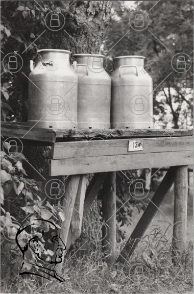 mjölk, mjölkkannor, trä, bord, natur, svartvitt, lantliv, land, gammaldags, behållare, mjölkproduktion, landskap, rustik, gård, traditionell, metall, utomhus, växtlighet, enkelhet, vintage