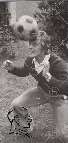 man, trädgård, leende, vintage, svartvitt, kläder, 1970-tal, frisyr, hand, pose, skratt, natur, grönska, ansiktsuttryck, avslappnad, fotografi, utomhus, människa, kroppsspråk, stil, tidsepok
