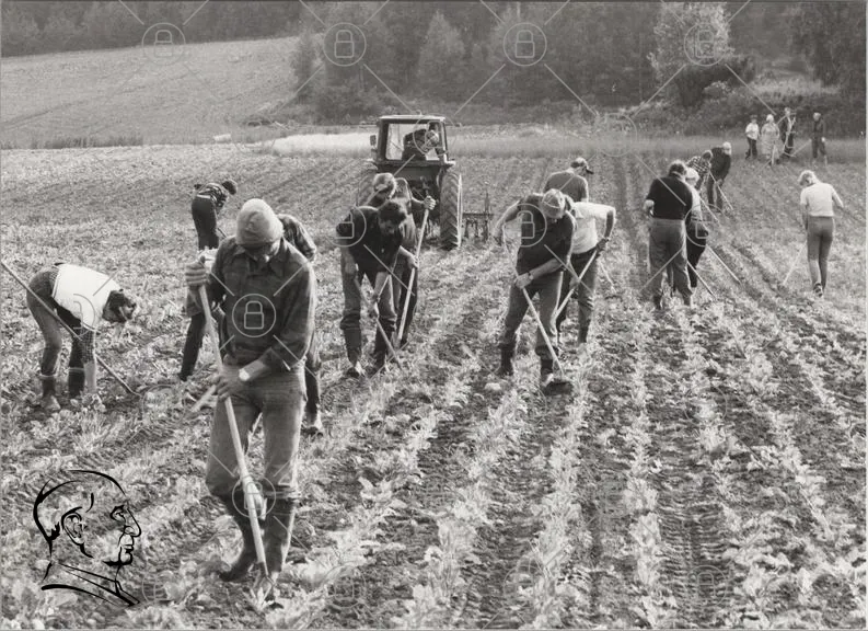 jordbruk, fält, arbetare, skörd, traktorer, grönsaker, plöjning, landskap, svartvitt, traditionellt, odling, verktyg, teamwork, natur, rural, säsongsarbete, bönder, jord, växter, arbete, historia, gemenskap, utomhus, manuell, skördetröska, väder, mark, växtlighet, arbetskraft, jordbruksmetoder