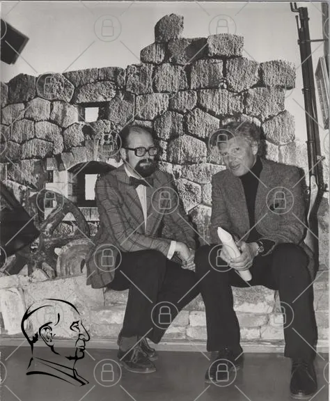 svartvitt, foto, män, kostymer, glasögon, skägg, leende, stenmur, inomhus, samtal, 1900-tal, kultur, historia, konst, arkitektur, retro, stil, kläder, uttryck, miljö, bakgrund, detaljer, interiör, fotografi, porträtt, vänskap, kreativitet, tradition