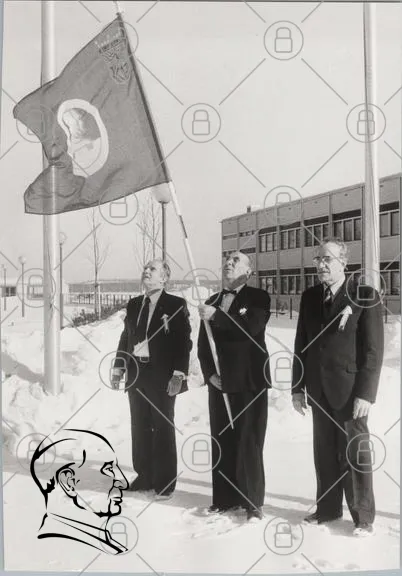 flagga, vinter, snö, män, ceremoni, byggnad, kostymer, tradition, högtid, uppvaktning, svartvitt, historia, symbol, fest, utomhus, stående, firande, representanter, banderoll, flaggstång, officiellt, minnesstund, kultur, samhälle, evenemang, gemenskap, stämning, ära, nationalitet, identitet