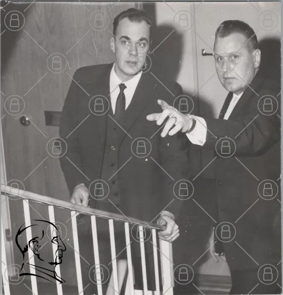 män, trappa, svartvitt, kostymer, 1950-tal, inomhus, affärsmän, allvarliga, gestikulera, fotografi, retro, vintage, kontor, stående, interiör, uttryck, kläder, stil, professionella, samarbete, diskussion, möte, ansikten, kroppsspråk, detaljer, miljö, bakgrund, ljus, skugga, perspektiv