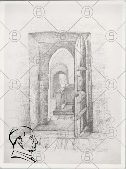 dörr, arkitektur, skiss, teckning, inredning, rum, trappa, gammal, sten, linjer, perspektiv, konst, svartvit, detaljer, öppning, historisk, interiör, ljus, skugga, design, hantverk, traditionell, byggnad, konstverk, minimalistisk, struktur, ytor, textur, atmosfär