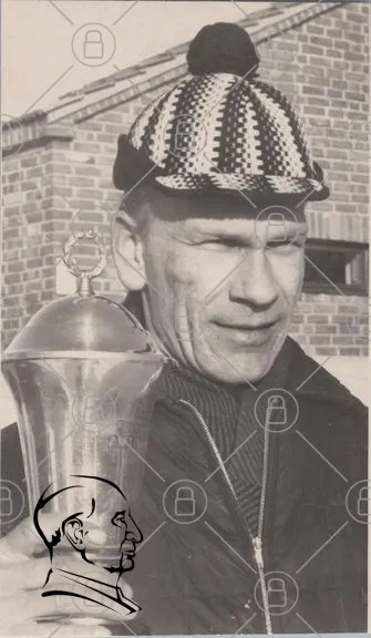 man, trofé, svartvitt, gammal bild, hatt, sport, seger, pris, leende, historisk, fotografi, 1900-tal, utomhus, ansikte, kläder, tradition, prestation, minne, nostalgi, idrott, medalj, utmärkelse, kappa, stil, kultur, sportevenemang, prestation, manlig, ikon