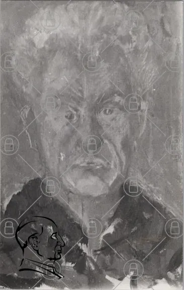 porträtt, ansikte, man, svartvitt, konst, målning, uttryck, gammal, rynkor, hår, kläder, detaljer, realism, känsla, blick, skugga, textur, stil, vintage, konstverk