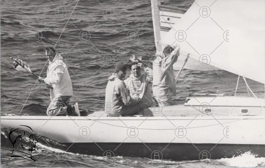 båt, segling, hav, vatten, segel, män, kläder, aktivitet, sport, sommar, roligt, grupp, natur, vågor, sol, utomhus, äventyr, samarbete, nöje, tradition, historia, marin, segelbåt, fotografering, svartvitt, vintage, resor, vänskap, team