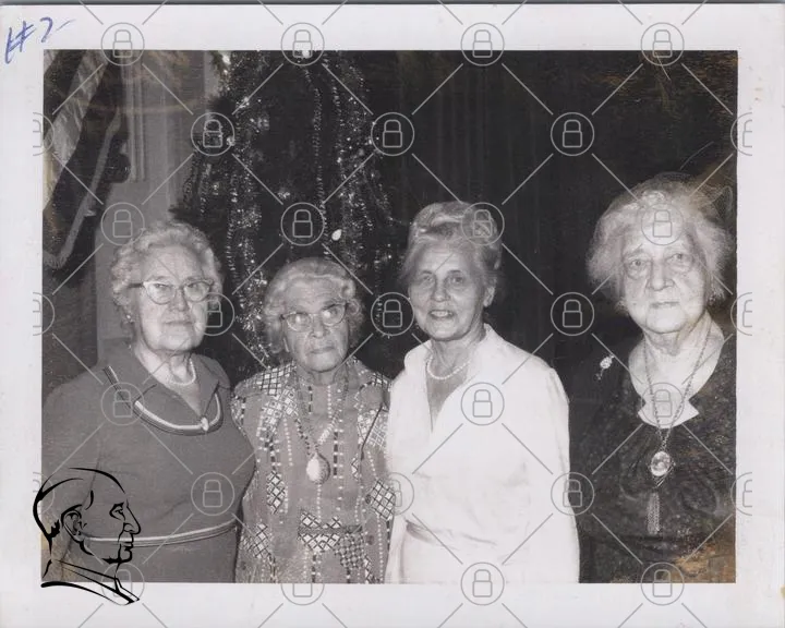 kvinnor, äldre, svartvitt, porträtt, julgran, kläder, smycken, leende, 1950-tal, familj, tradition, samling, fest, minnen, gemenskap, kvinnor i grupp, vintage, nostalgi, bakgrund, inomhus, fotografi, ansikten, generationer, historia, kultur, vänskap, glädje, festligheter, kvinnlig styrka, tidlös