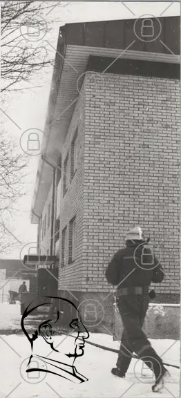 byggnad, tegel, brandman, svartvitt, träd, fönster, dörr, säkerhet, räddningstjänst, utomhus, struktur, människa, uniform, övervakning, samhälle, arkitektur, historisk, foto, arbete, insats