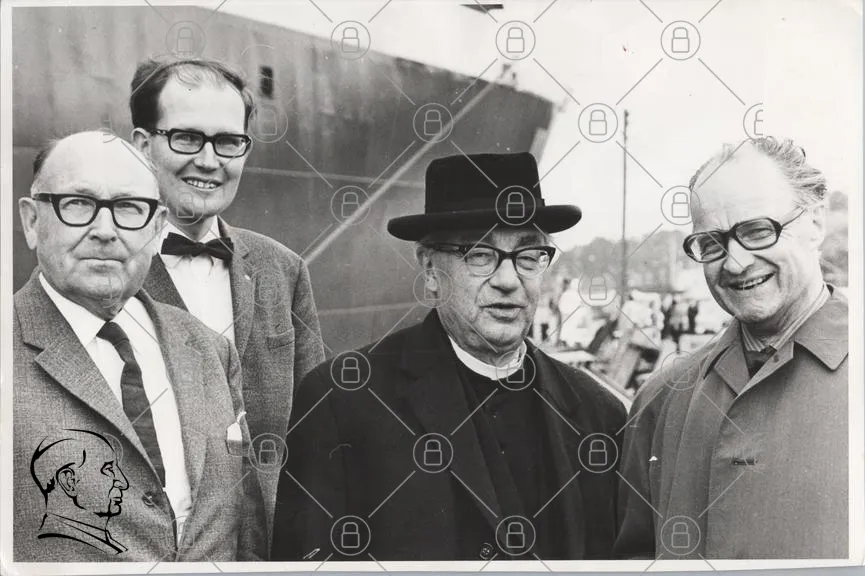 svartvitt, foto, män, hattar, båt, hamn, 1900-tal, kostymer, glasögon, leende, grupp, porträtt, traditionell, kläder, svart, vit, ansikten, mänskliga, samling, historia, nostalgi, utomhus, fotografi, gammal, stil, tidsepok, socialt, evenemang, vänner, samarbete