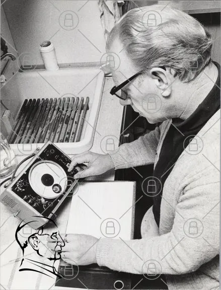 man, radio, teknik, mätinstrument, kök, skrivbord, anteckningsblock, 1970-tal, svartvitt, elektronik, experiment, ljud, vetenskap, hobby, verktyg, forskning, vintage, apparat, mätning, ljudvågor, kreativitet, koncentration, detaljer, handarbete, mekanik, ljudteknik, retro, manuell, analys, precision