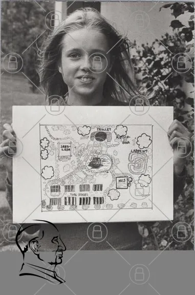 flicka, teckning, karta, träd, moln, labyrint, hus, sjö, troll, barn, kreativitet, natur, konst, svartvitt, porträtt, utomhus, leende, barnslig, illustration, handritad, skiss, lekfull, fantasi, landskap, detaljer, barnkonst, uttryck, glädje, sommar