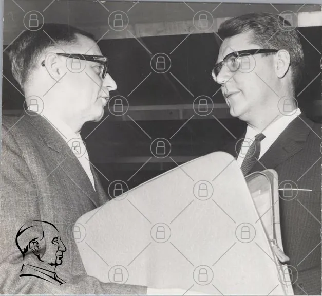 svartvit, foto, män, kostymer, glasögon, möte, affärsmän, 1960-tal, diskussion, dokument, portfölj, inomhus, kontor, professionellt, ansikten, uttryck, kläder, stil, retro, historiskt, interaktion, kommunikation, företagande, ledarskap, teknik, industri, presentation, samarbete, affärsrelationer