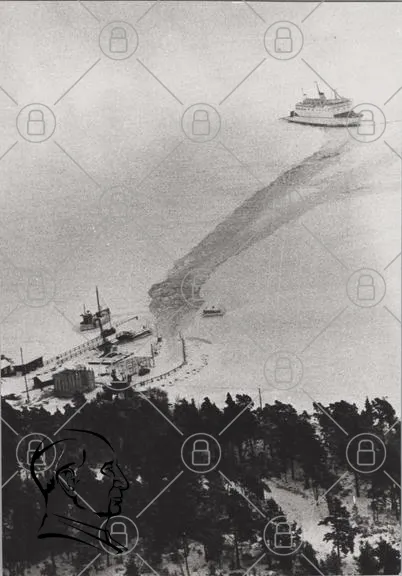 m/s Kumlinge backar ut från Enklinge (5.1.1979).