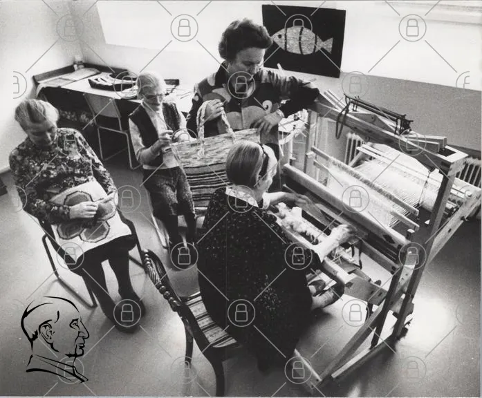 vävning, hantverk, kvinnor, textil, vävstol, handarbete, kreativitet, tradition, konst, gemenskap, svartvitt, inomhus, äldre, utbildning, kultur, mönster, tyg, arbete, samarbete, hobby, konstnärligt, design, historia, lokal, grupp, aktivitet, fritid, socialt, lärande, inspiration, handgjort