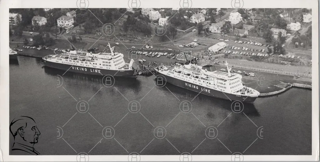 fartyg, Viking Line, hamn, båtar, sjöfart, svartvitt, landskap, passagerare, kaj, trafik, 1960-tal, resor, hav, båtplats, turism, historia, kust, båtliv, människor, fordon, parkering