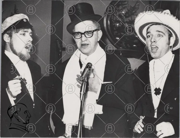 män, hattar, mikrofon, sjunga, kostymer, slipsar, glasögon, scen, uppträdande, svartvitt, traditionell klädsel, grupp, musiker, sångare, evenemang, formell, vintage, 1900-tal, fest, kultur