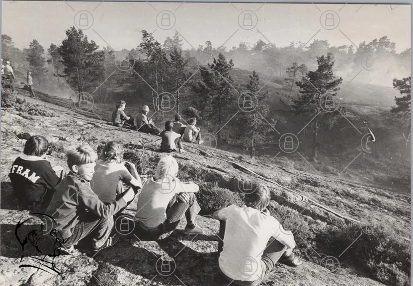 barn, skog, klippa, natur, sittande, utsikt, träd, sommar, lek, vänner, svartvitt, fotografering, landskap, avkoppling, gemenskap, minnen, ungdomar, fritid, stillhet, äventyr
