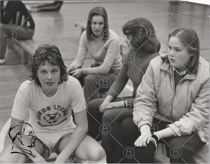 flickor, sport, volleyboll, träning, lag, ungdomar, gymnastiksal, 1980-tal, svartvitt, kläder, leenden, samarbete, aktivitet, ungdomssport, gemenskap, tjejer, motion, vänskap, sportkläder, avslappnat, skratt, fokus, samling, socialt, idrott, ungdomsaktiviteter, sportevenemang, laganda, träningstillfälle, ungdomsliv