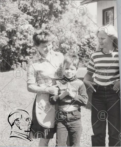 barn, kvinnor, svartvitt, leende, tröja, klänning, byxor, natur, familj, glädje, 1960-tal, utomhus, händer, tradition, sommar, fotografering, minnen, nostalgi, gemenskap, skratt