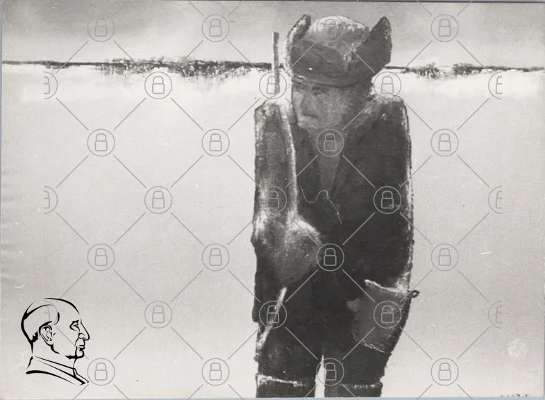 man, is, fishing, ice, winter, cold, lake, snow, traditional, clothing, hat, rod, nature, landscape, black and white, outdoors, activity, solitude, reflection, water, frozen