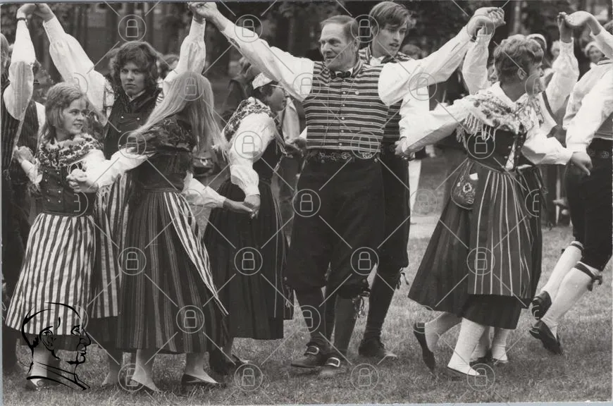 folkdräkt, traditionell, dans, Sverige, kultur, fest, historisk, samling, människor, svartvitt, kläder, gemenskap, glädje, utomhus, evenemang, musik, hantverk, ungdomar, äldre, festligheter