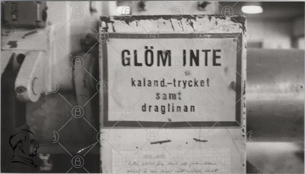 glöm, inte, kaland, trycket, samt, draglinan, skylt, instruktion, svartvit, foto, industri, maskin, säkerhet, varning, text, information, gammal, retro, fabrik, arbetsplats