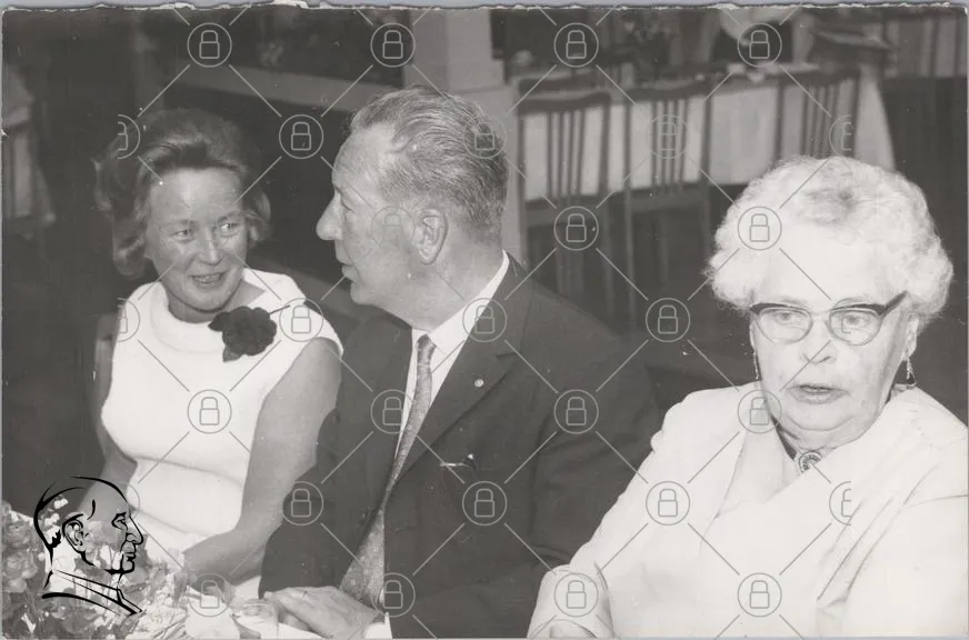 svartvit, fest, middag, människor, kläder, leende, bord, stolar, 1960-tal, kvinna, man, samtal, sällskap, eleganta, traditionell, social, samvaro, porträtt, nostalgisk, interiör