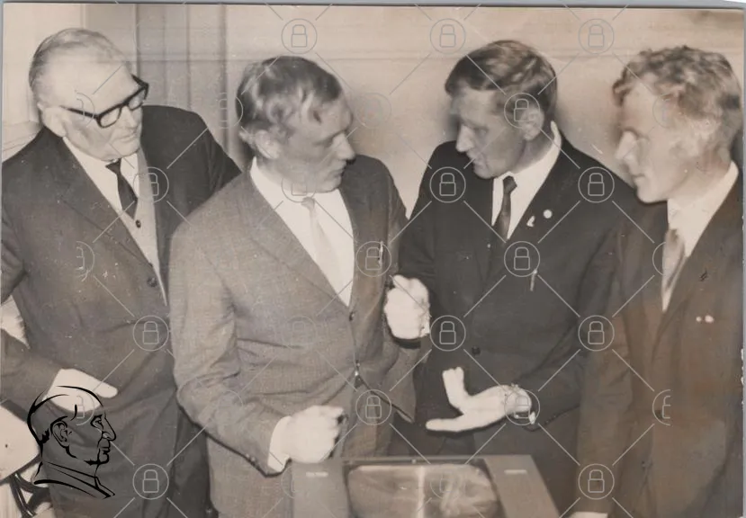 historisk, svartvit, män, diskussion, presentation, teknik, 1960-tal, kontor, dokument, utrustning, kostymer, glasögon, ansiktsuttryck, samarbete, forskning, innovation, vetenskap, möte, information, föredrag