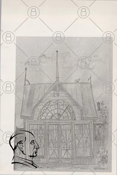 byggnad, tak, fönster, arkitektur, skiss, blyertsteckning, linjer, detaljer, himmel, moln, konstruktion, design, gammal, stil, trä, takspets, dörrar, perspektiv, konst, illustration, svartvit