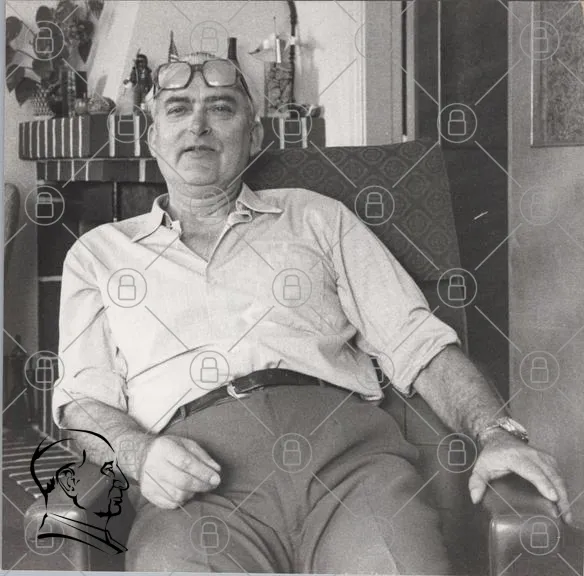 man, glasögon, fåtölj, leende, inomhus, svartvitt, sittande, kläder, rum, möbler, växter, vägg, armstöd, avslappnad, äldre, interiör, heminredning, personlig, stil, ansikte, händer