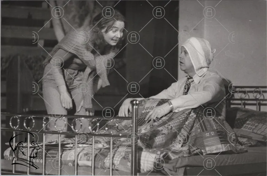 svartvit, kvinna, man, säng, filt, sjal, interiör, samtal, uttryck, kläder, 1900-tal, drama, teater, scen, skådespelare, känslor, komedi, vintage, nostalgisk, dialog, ansiktsuttryck, rum, inredning, belysning, kroppsspråk, relation, humor, situation, karaktärer, berättelse