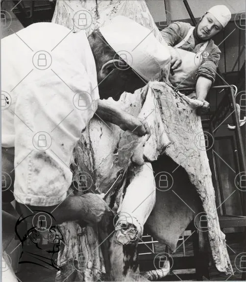 slaktare, kött, slakt, arbete, historisk, svartvit, hantverk, djur, mat, yrke, tradition, skärning, handarbete, industri, köttbearbetning, verktyg, kläder, huvudbonad, man, män, bakgrund, process, profession, lokal, hantverkskonst, råvara, köttstycken, skinn, arbetsmiljö, samarbete, teknik