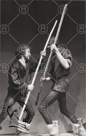 dans, teater, svartvitt, kostymer, stavar, rörelse, uttryck, scen, performance, konst, män, samarbete, dramatik, kroppsspråk, 1970-tal, föreställning