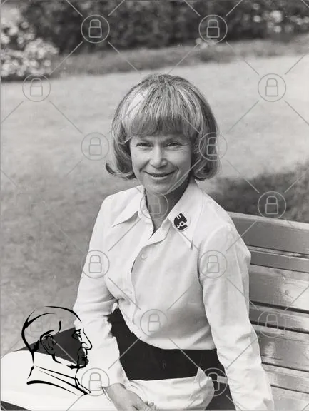 kvinna, porträtt, svartvitt, park, bänk, leende, kläder, frisyr, 1970-tal, mode, natur, bakgrund, ansikte, uttryck, stil, fotografi, vintage, personlig, charm, elegans
