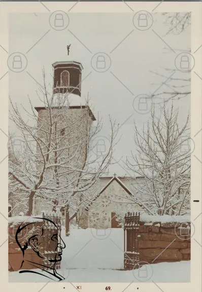 kyrka, snö, vinter, träd, torn, kristus, landskap, byggnad, himmel, staket, grönska, natur, lugn, stillhet, tradition, arkitektur, religiös, kultur, historia, fridfull