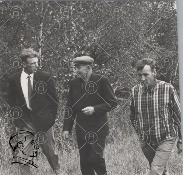 män, skog, promenad, kostymer, hatt, natur, svartvitt, 1960-tal, vänner, samtal, kläder, träd, gräs, landskap, traditionell, utomhus, fotografi, historia, vintage, mänsklig interaktion