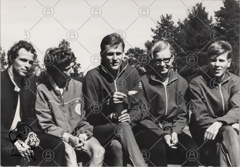 grupp, personer, svartvitt, kläder, jackor, blommor, leende, utomhus, 1960-tal, ungdomar, fotografering, natur, ansikten, sport, gemenskap, vänskap, stil, retro, minnen, nostalgi
