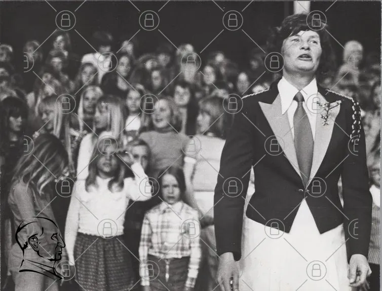 skola, barn, tjejer, pojkar, kläder, 1970-tal, grupp, sång, evenemang, svartvitt, leenden, frisyrer, klänningar, skjortor, fotografering, scen, publik, gemenskap, ungdomar, minnen, tradition, fest, glädje, samling, aktivitet, kultur, nostalgi, gemenskap, uppträdande
